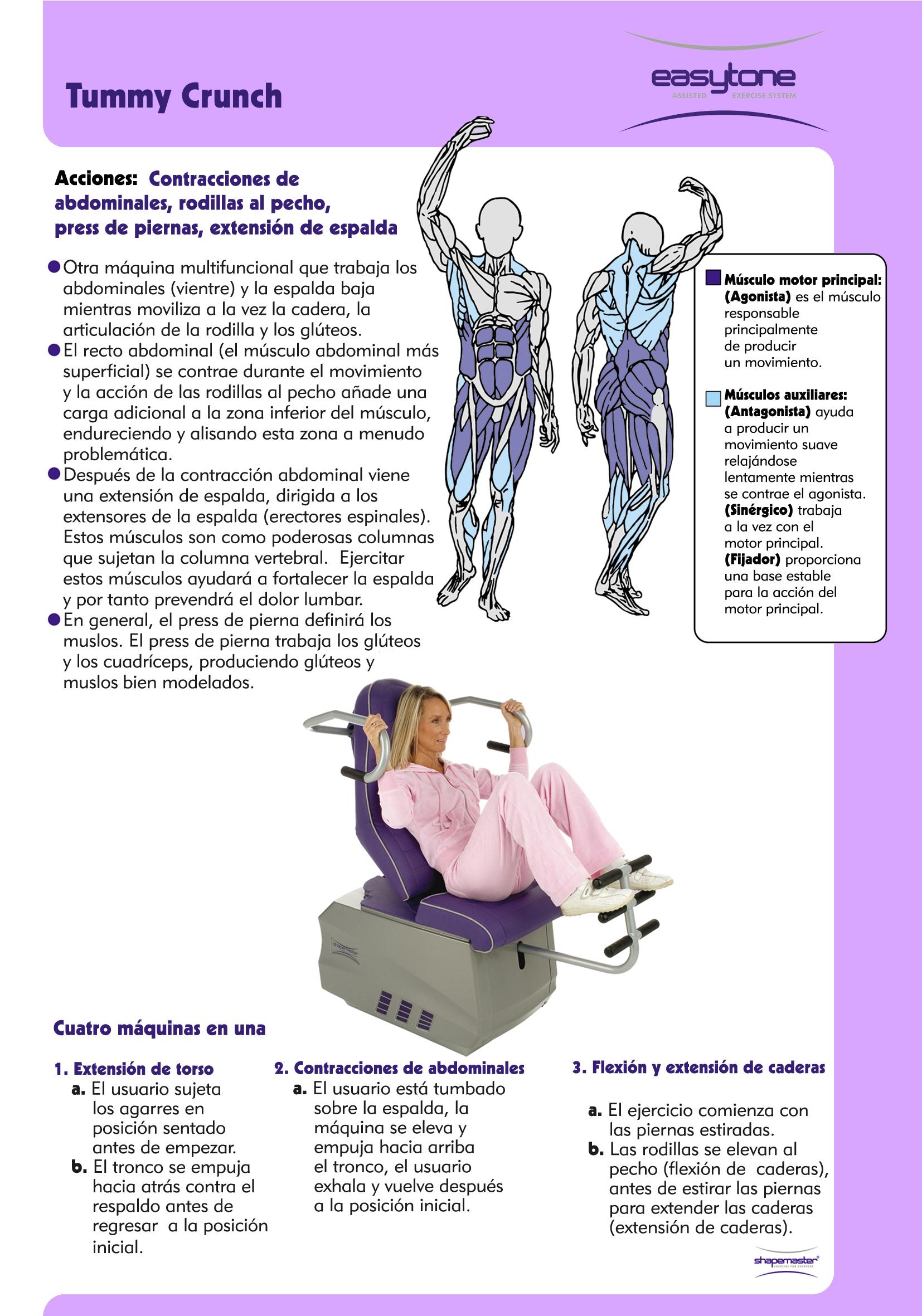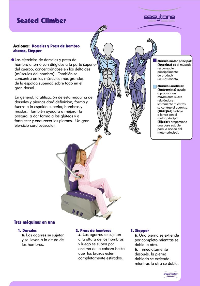 La gama abarca ocho máquinas diseñadas para contribuir al programa de condicionamiento físico más completo del mercado actual. Un entrenamiento de 30 minutos de 3 a 5 días semanales aprotan el máximo beneficio.